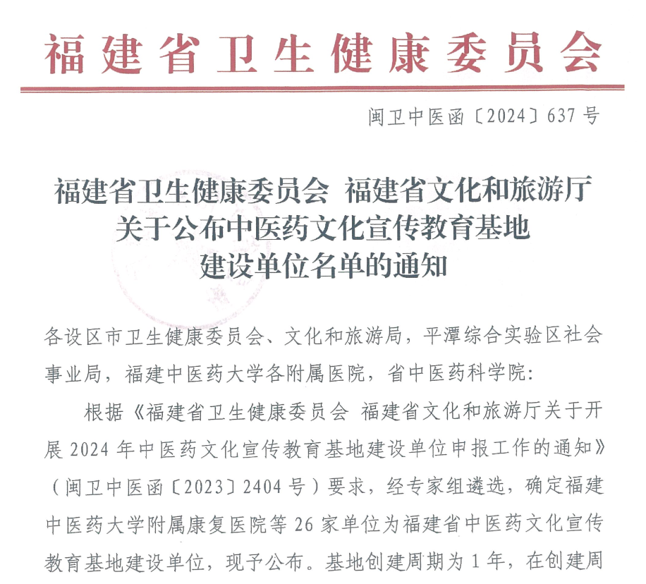 根据通知要求,文化基地创建周期为一年,创建周期结束后,省卫健委、省文旅厅将组织专家对文化基地建设单位进行评审,符合标准的将确定为“福建省中医药文化宣传教育基地”。中医系全体师生将严格按照创建标准和要求做好创建工作,充分挖掘和弘扬中医药文化,努力将八闽园药园、医学院羲园、德旺图书馆香山书房中医药文化角、中医临床实训中心等区域建成集文化展示、体验、传播于一身的中医药文化宣传、教育、体验基地,为群众了解和认识中医药提供体验平台,为传承发展中医药、建设健康福建提供有力支持。