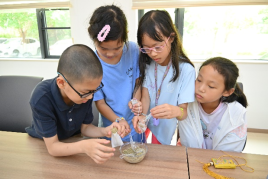第二场活动为制作香囊。中医系药园团队的讲解员向孩子们介绍了香囊制作的历史、香囊的不同形状和花纹图案的寓意、香囊药物搭配的比例和作用等,让孩子们在学中玩,玩中学,通过近距离接触香药和自己动手制作香囊,进一步加深对中医药文化的认知与兴趣。