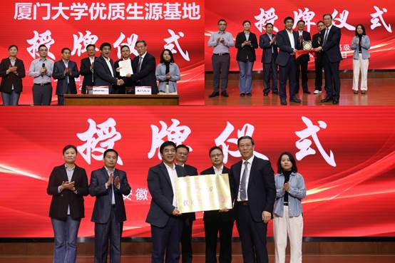 为进一步提高我校在安徽省的生源质量,10月28日下午,厦门大学安徽招生宣传组赴安徽省合肥市肥西实验高级中学开展招生宣传活动。此次安徽招生宣传组由医学院副院长李文岗教授带队,新闻传播学院叶虎副教授、医学院人事办黄飞榕老师随行,在肥西实验高级中学开展“优质生源基地”签约及授牌仪式、科普讲座及招生宣讲系列活动。活动由肥西实验高级中学副校长汪晓宇主持,校长韩远兵、党总支书记常务副校长周丰群、副校长张秀军及高二、高三年级师生代表参加活动。