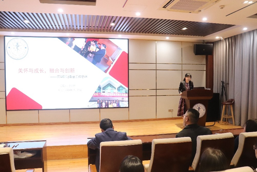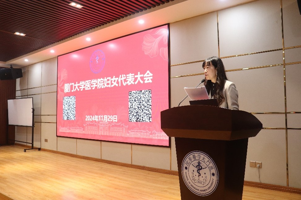11月29日中午,医学院在翔安校区成义楼102报告厅召开2024年妇女代表大会。学院党委书记李峰、副书记辛晓丹,副院长谢莉萍,工会主席卓仁恭,女教职工及女学生代表90多名参加会议。会议由辛晓丹主持。