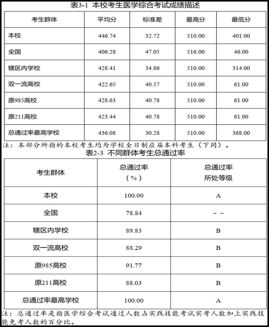 数据来源:2024年医师资格考试成绩分析报告(厦门大学,口腔执业医师)。其中,表3-1“总通过率最高学校”指所有100%通过的学校全部考生的计算结果