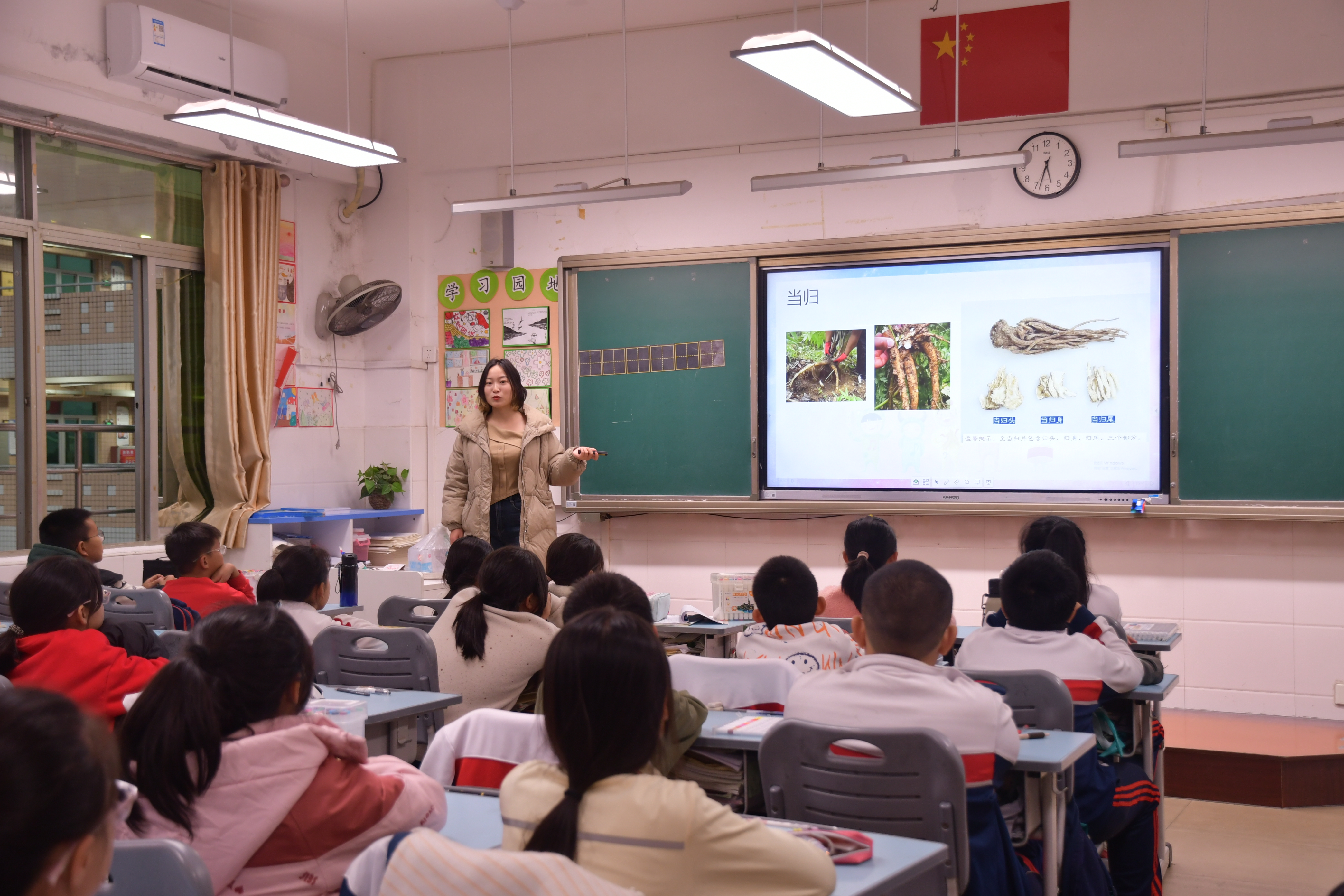 随后,支部党员和药园团队成员们走进四、五、六年级教室,开展丰富多彩的中医药趣味小课堂活动,六个班级近三百名小学生参加了此项活动。