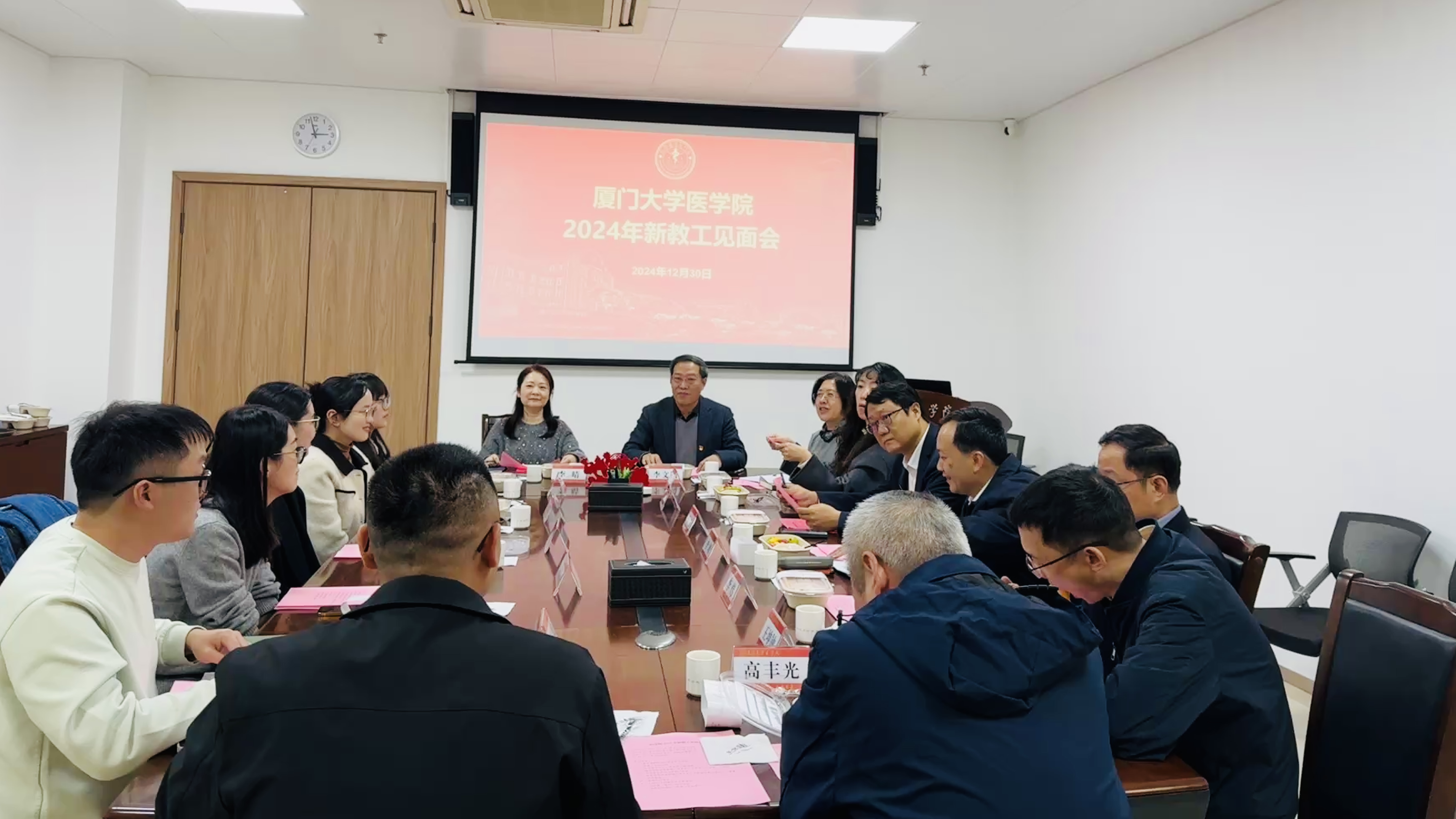 为深入了解新教工来院后工作开展及生活情况,落实学院全方位为教工服务理念,增强新教工归属感,12月30日下午,医学院在爱礼楼北楼105会议室召开2024年新教工见面会,学院党政班子成员、党委委员、院长助理、工会负责人出席。