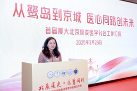 成立仪式后,周五一为首届医学分会会长罗小云颁发聘书。罗小云发表题为《从鹭岛到京城,医心同路创未来》的就职演讲。她表示,分会将致力于凝聚校友力量,推动学术交流、资源共享与社会服务,助力“南强医学”品牌走向全国。