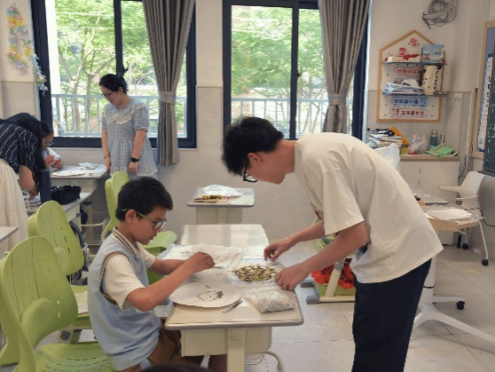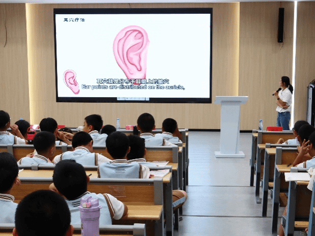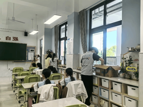 此次活动过程中,各团队分工协作,确保各环节有序开展。药园团队成员们负责准备和搬运饮片、药粉、贴画材料包、香囊等物资,维持活动现场秩序,用心记录活动瞬间;教工党支部老师们深入班级,指导学生规范进行穴位按摩与药材配伍,纠正操作偏差;研究生党支部党员们化身小老师,用所学的专业知识为孩子们带来了精彩的讲座,将中医药理论与实践相结合。从知识传递到实践落地,中医药文化种子在孩子们心中悄然播撒。