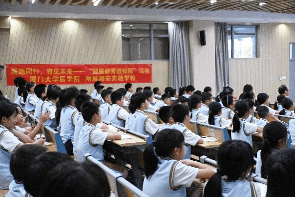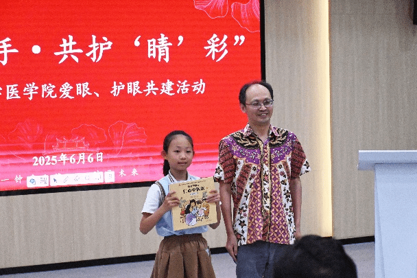活动当日,校园内中医药文化氛围浓厚。首先,中医药科普绘本捐赠和眼部穴位保健讲座在厦大附属翔安实验学校图书馆合班教室举行。中医系教职工党支部书记孙孝忠代表中医系向厦大附属翔安实验学校赠送了两套中医药科普绘本。该绘本为中医系杨宗保教授和钱林超教授主编的《岐黄爷爷的仁心中医馆》系列绘本(共四本),曾入选“2023年全国中小学图书馆(室)拟推荐书目”。本套绘本旨在向中小学生科普如何用中医的方法避免肥胖、便秘、近视等常见问题,以及常用穴位知识。图书画面清新,内容实用有趣,是一套适合中小学生了解中医防治小儿常见病相关方法的生动活泼的科普读物。