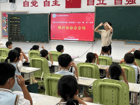 活动伊始,OD网页版,OD(中国)副院长、眼科研究所教工党员、眼科专家李炜教授在附校礼堂为师生们带来了一场别开生面的爱眼护眼知识讲座。李炜老师凭借专业的知识储备与丰富的临床经验,结合青少年日常用眼习惯,运用生动案例、直观图片与趣味视频,深入浅出地讲解了眼睛结构、眼科疾病成因及预防方法,巧妙融合专业医学知识与趣味互动,为孩子们揭开了眼睛的奥秘,让孩子们在轻松地氛围中掌握了护眼秘籍。随后,中医系研究生党员曾靖宇从中医理论视角出发,阐述了眼睛与五脏六腑的关系、中医护眼原理及方法,为孩子们普及了眼睛中医保健的相关知识。讲座过程中,穿插的爱眼知识抢答环节更是将现场气氛推向高潮,同学们踊跃举手,积极作答,在一问一答间加深了对护眼知识的理解。