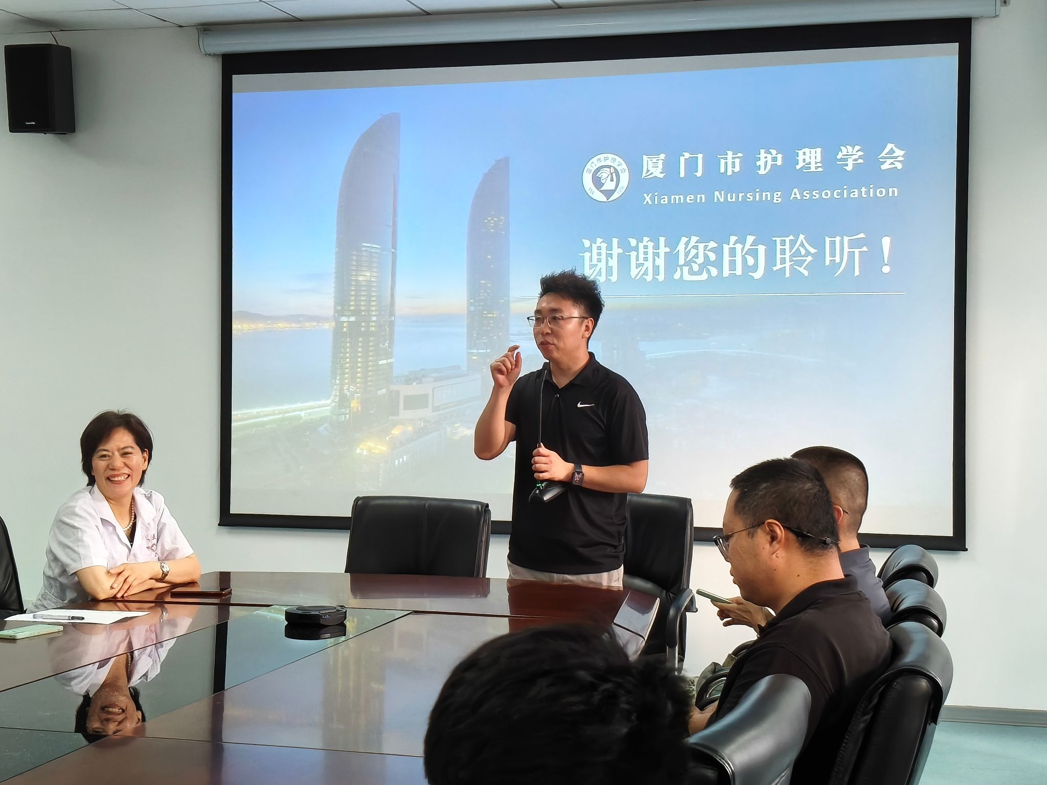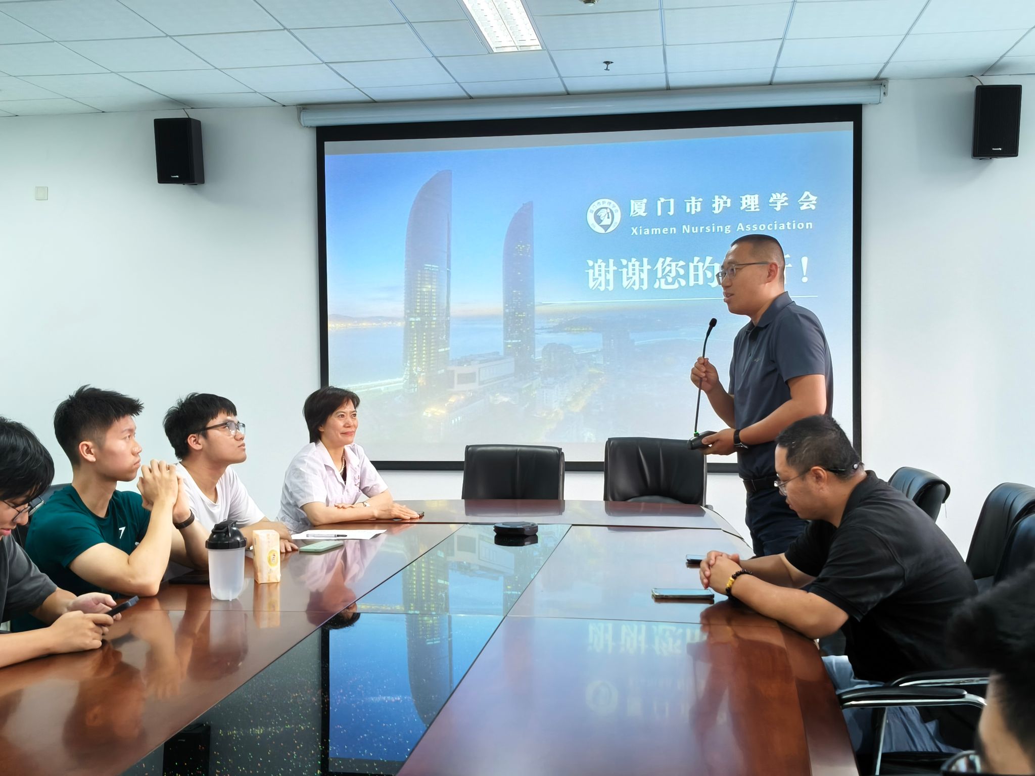 最后,沈曲副教授总结发言。她强调,护理工作是一项充满爱心与责任心的事业,希望同学们珍惜实习机会,在提升专业技能的同时,注重人文关怀和沟通能力的培养。她鼓励同学们以厦门市护理学会男护士委员会的优秀医护前辈们为榜样,明确目标,积极进取,在未来的工作岗位上不断学习、勇于创新,为护理行业注入活力。