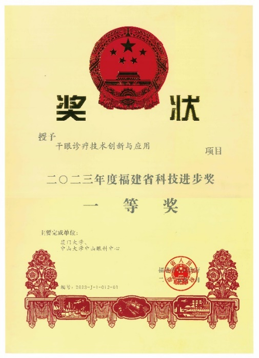 近日,福建省科学技术厅公示2023年度福建省科学技术奖评审结果,医学院眼科研究所牵头的“干眼诊疗技术创新与应用”项目获得福建省2023年科技进步一等奖。