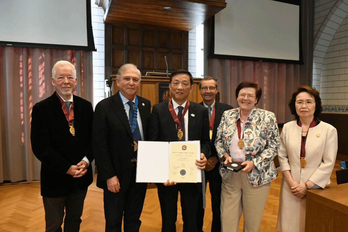 近日,在荷兰莱顿大学举行的国际眼科科学院(Academia Ophthalmologica Internationalis, AOI)50周年院士大会上,厦门大学医学院刘祖国教授入选国际眼科科学院院士。国际眼科科学院主席Richard L. Abbott教授以及执行理事为刘祖国教授授予AOI院士奖牌和证书。